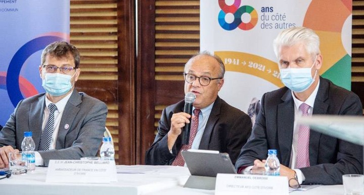 L’Agence française de développement (Afd) célèbre ses 80 ans cette année. Cette commémoration a été marquée, ce mercredi 13 octobre 2021, par une conférence de presse co-animée à la Résidence de France, à Cocody, par Jean-Christophe Belliard, Ambassadeur de France en Côte d’Ivoire ; Emmanuel Debroise, Directeur de l’Afd Côte d’Ivoire ; Mathieu Discour, Directeur régional Golfe de Guinée ; François Jacquier, Directeur Afd Togo et Fatoumata Sissoko Sy, Directrice régionale de Proparco Afrique de l’ouest.