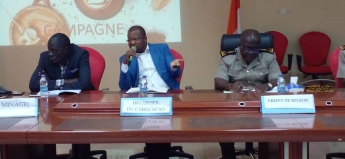 Adzopé, 30 nov 2022 (AIP) – Le délégué régional du Conseil café-cacao de l’Agnéby-Tiassa et de la Mé, Koulibaly Zémogo, a invité mardi 29 novembre 2022 les acteurs de la filière à un meilleur rendement, tant au niveau de la quantité que de la qualité, lors du lancement de la campagne de commercialisation 2022-2023 au niveau régional à Adzopé.