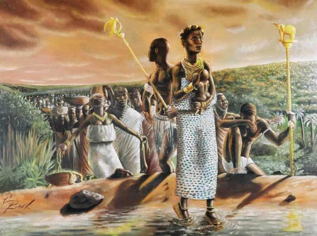Néanmoins, le sujet me fit voyager plus loin encore dans le temps et sur les terres de mes ancêtres walèbo. La situation me fit penser particulièrement à la Reine Abla Pokou. Je continue de me demander si cette personne s’appelait vraiment Abla Pokou ou si son identité avait subit une modification sonore. Le peuple qu’elle conduisait que nous appelons aujourd’hui le peuple baoulé, signifie ”l’enfant est mort”. Mais tous les baoulés savent que le mot ”baoulé” ne donne pas cette définition mot à mot. Le peuple devrait s’appeler certainement ”bagne wouli”.